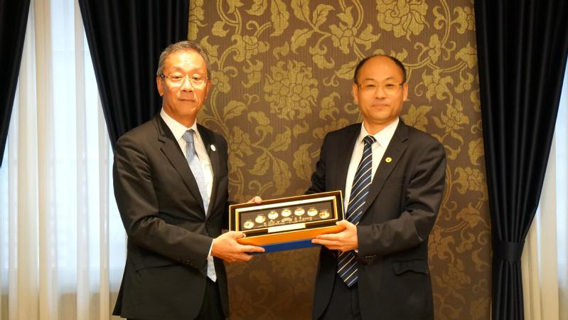 在东京科学大学,马琰铭会见了大竹尚登(Naoto Ohtake)理事长。马琰铭介绍了学校的办学特色、学科优势、发展成果等,期待与东京科学大学深化能源、机械、口腔医学等领域的合作。大竹尚登介绍了东京科学大学近年来的发展情况与国际合作布局。双方围绕学科建设与国际合作开展了深入交流。