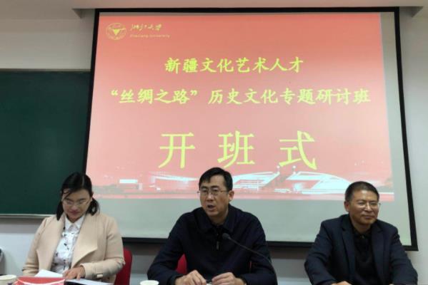 3月18日,新疆文化艺术人才“丝绸之路”历史文化专题研讨班在浙江大学华家池校区顺利开班。昌吉州文学艺术界联合会党组副书记、主席王建忠,浙江大学继续教育学院副院长王正栋出席了本次开班仪式,29位学员参加了此次培训。